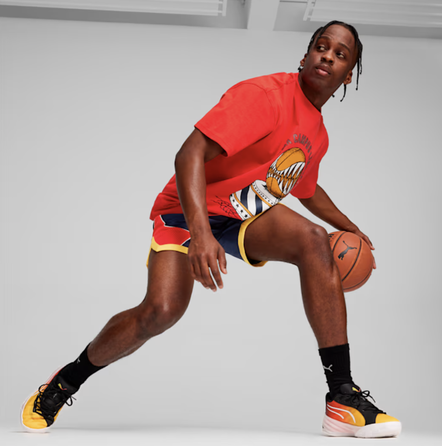 Dominate the court in this lightweight PUMA HOOPS tee that’s built for high performance. Breakaway from defenders and drive hard to the basket, the breathable fabric keeping you cool under pressure so you can focus on scoring the winning shot.